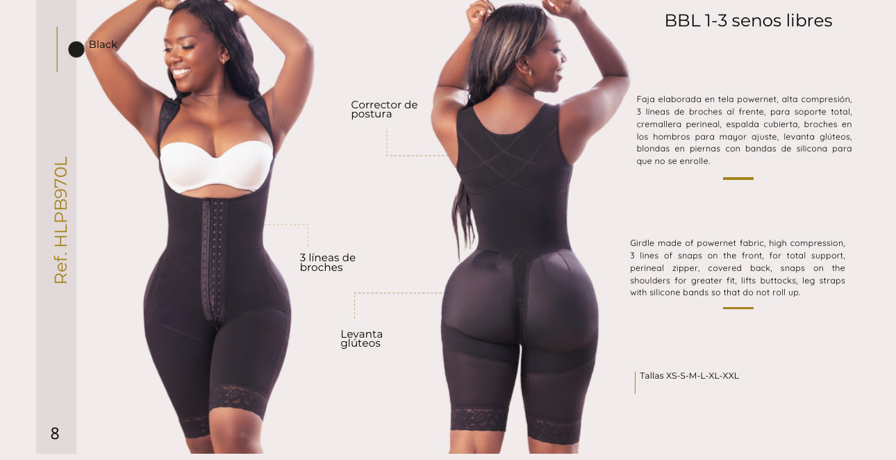Para mujeres con 3 tallas más encadera que en cintura, Fajas con glúteos amplios para mayor capacidad.